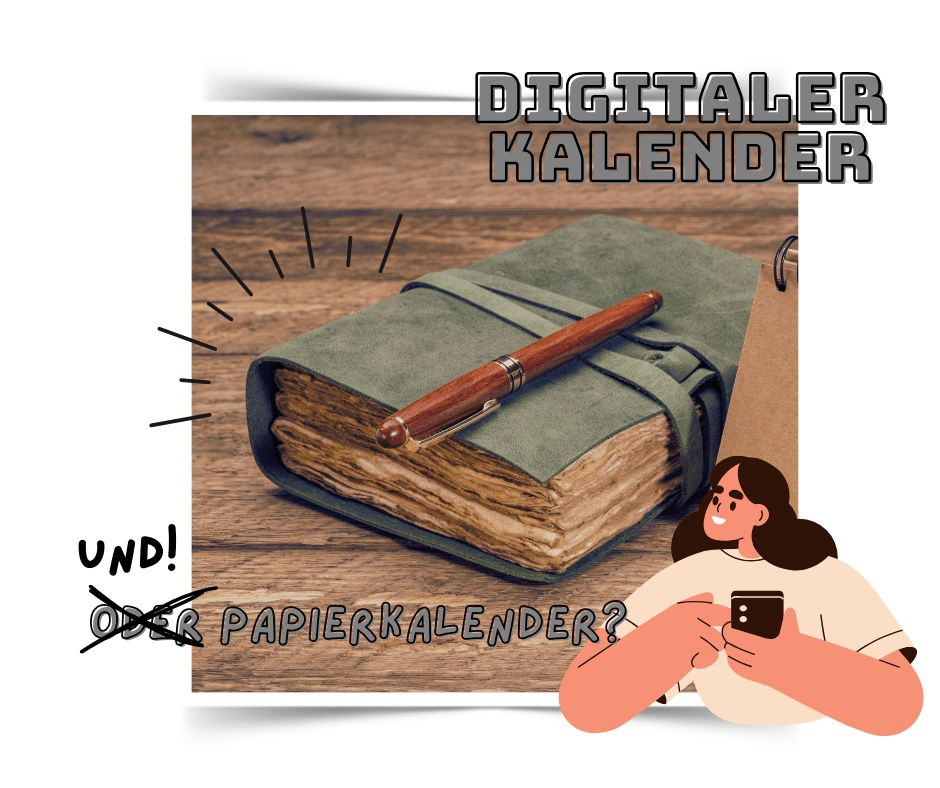 Deshalb stelle ich dir hier meine mögliche Lösung für das „Dilemma“ vor, mit der du das Beste aus beiden Welten – digitaler Kalender mit allen praktischen Funktionen sowie Papierkalender mit der wunderbaren Haptik und der besseren Überesichtlichkeit – vereinen kannst.