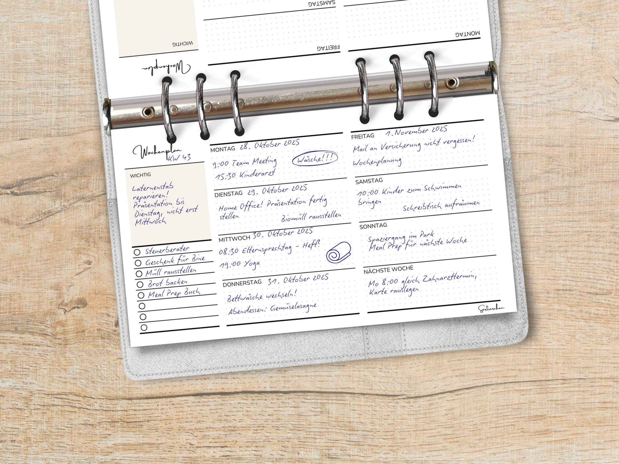 Perfekt für alle, die eine strukturierte, aber schlichte Wochenplanung suchen – ohne unnötigen Schnickschnack!