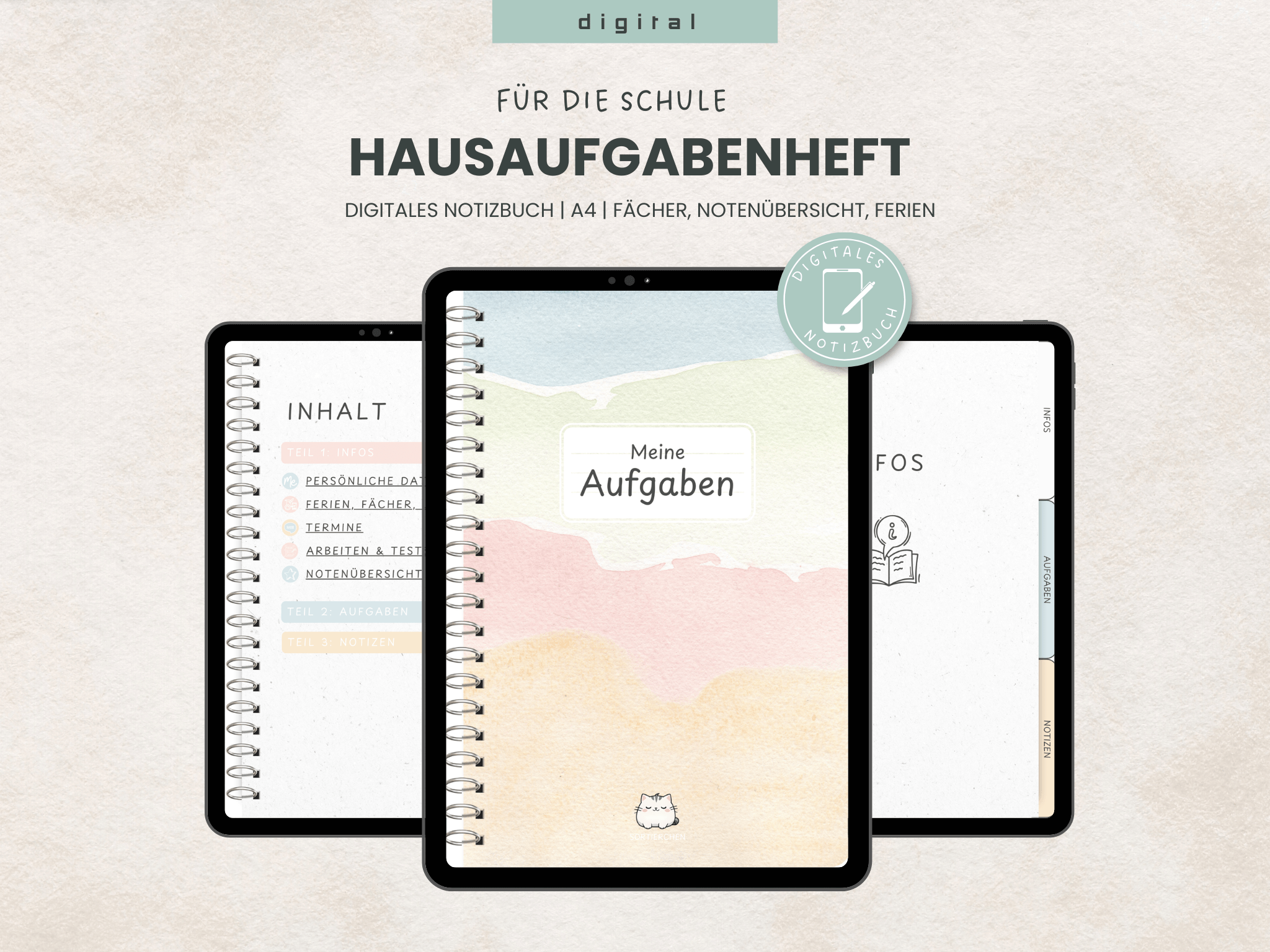 Aufgabenheft Hausaufgabenheft – digitales Notizbuch für z.B. Goodnotes – zum Schulstart nach den Ferien und zur Einschulung
