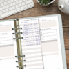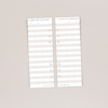 Die Einlagen sind im halben A5-Format, 7,4 x 21 cm und gelocht (6-fach Lochung). Auf Vor- und Rückseite gibt es 3 Spalten: eine für die Kategorie deiner Ausgaben, eine mit einem Euro-Symbol für den Betrag und eine mit einem Kalender-Icon für das aktuelle Datum. Dieses Zubehör ergänzt eine Wochenplanung ebenso wie eine Monatsplanung: hefte die Einlagen einfach eine Woche oder einen Monat weiter, wenn sie noch nicht voll sind und behalte so den Überblick über deine Ausgaben. So wird dein Ringbuchplaner zum Haushaltsbuch.