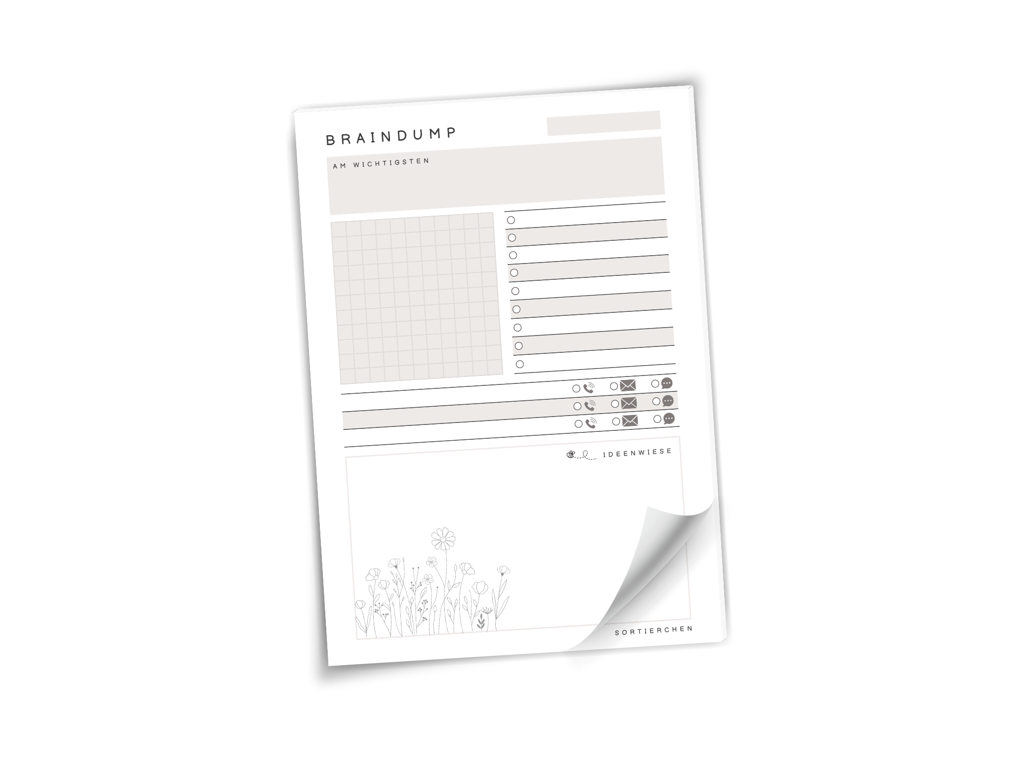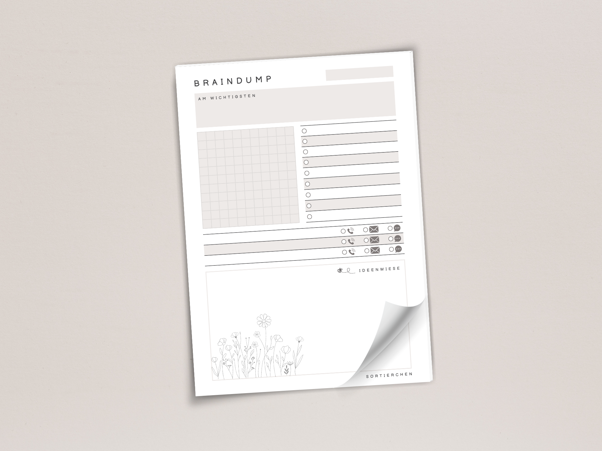 Manchmal ist der Kopf einfach voll mit To-dos, Gedanken, Ideen, Dingen, die man nicht vergessen will. Genau dafür ist dieser Brain Dump Block gedacht: Alles raus aus dem Kopf, rauf aufs Papier.