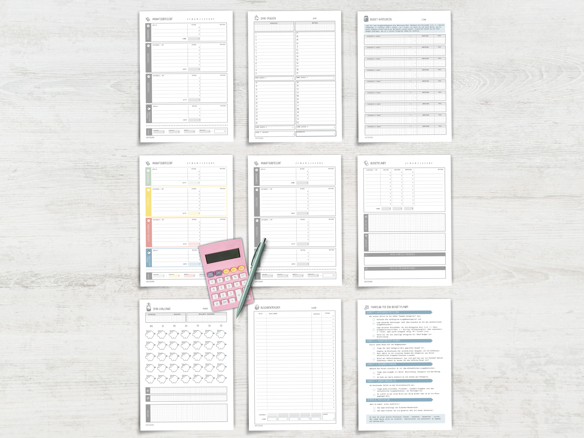 Genau da setzt dieses Budgetplaner-Bundle an: Es holt dich mitten in deinem Alltag ab und macht deine Finanzen greifbar. Kein Zahlenwust, kein kompliziertes Excel, sondern klare Seiten zum Ausfüllen, die dir Schritt für Schritt zeigen: Was kommt rein, was geht raus und passt das überhaupt zu dem, was du geplant hattest?