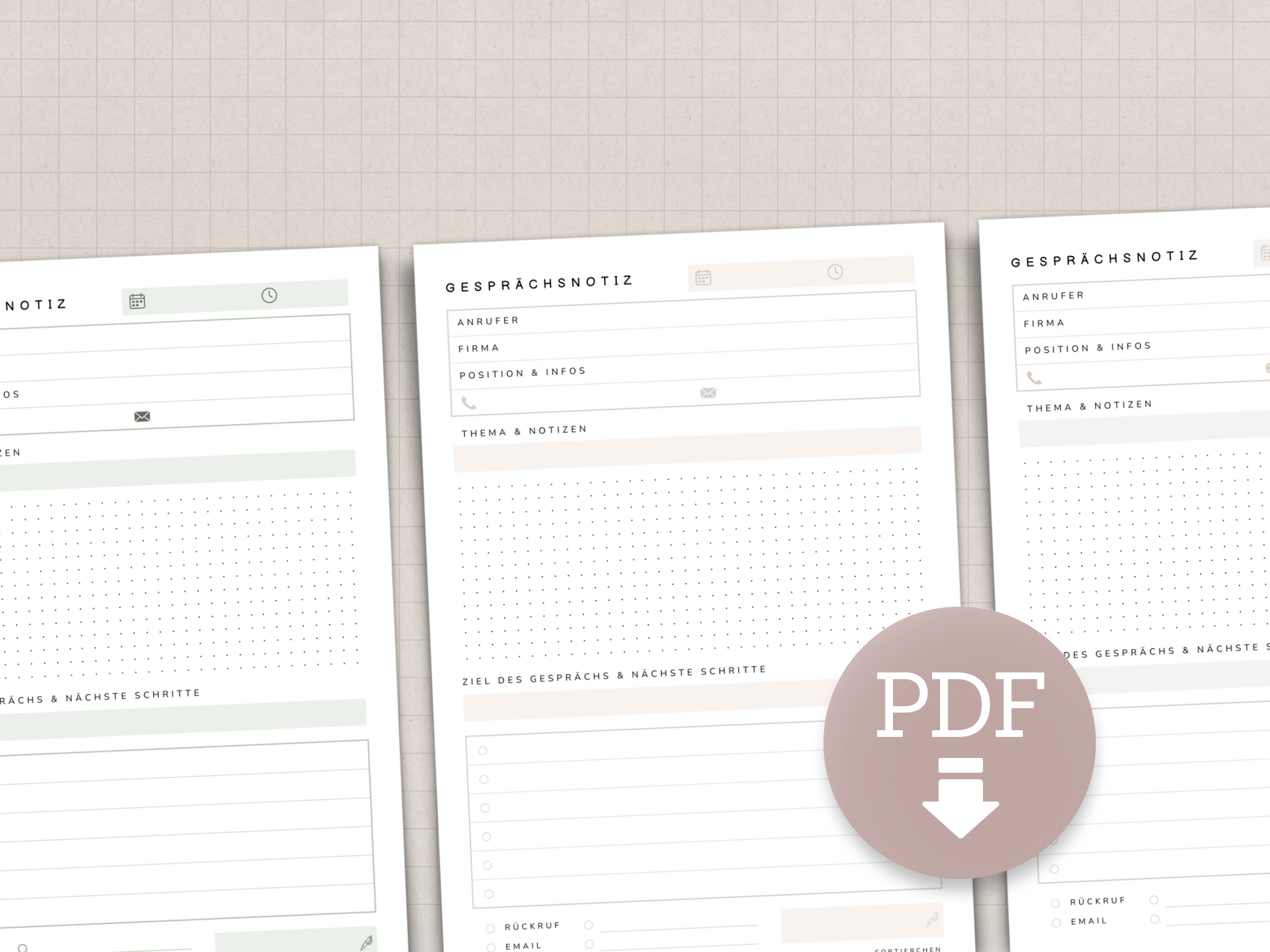Gesprächsnotiz Vorlage PDF A4 zum Ausdrucken in 4 Farben – Telefonnotizen im Büro oder Home Office