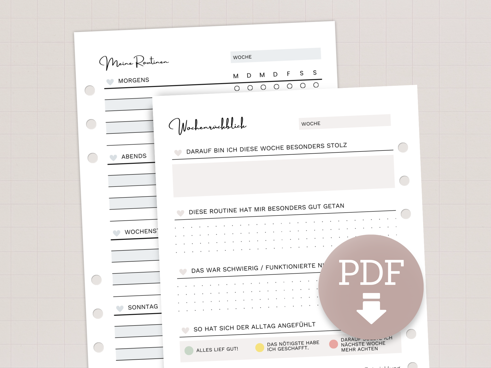 Wöchentlicher Routinen Planer PDF | Wochenrückblick A5 | Habit Tracker für Ringplaner
