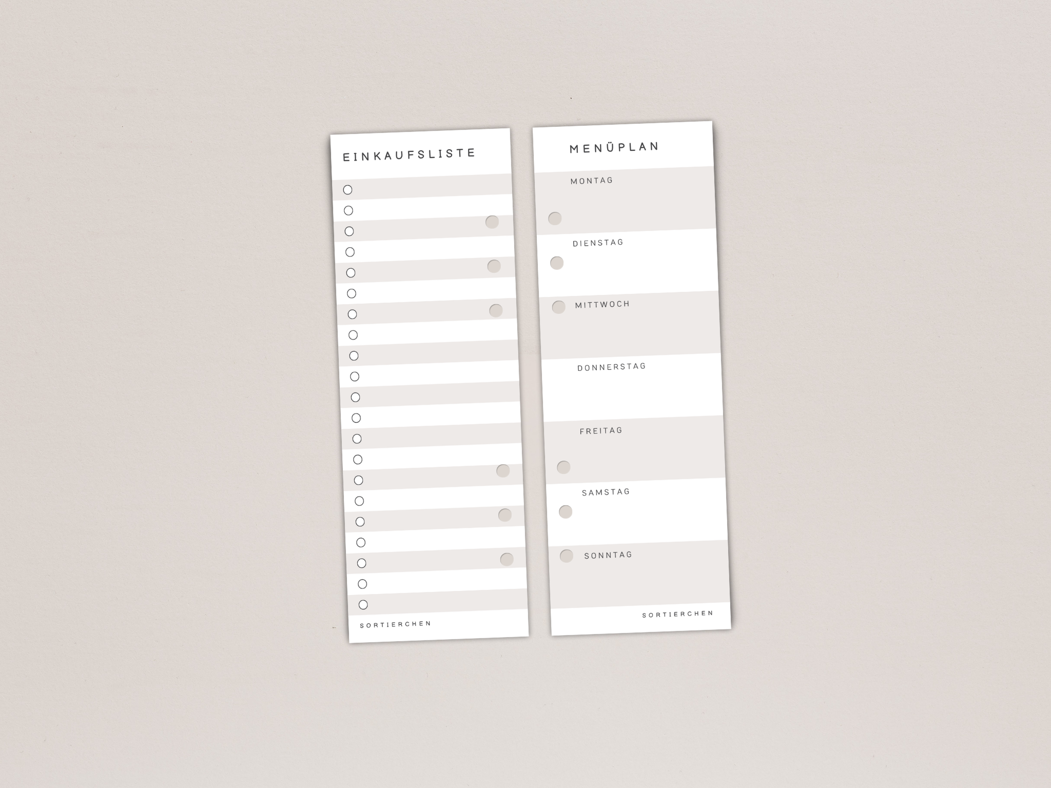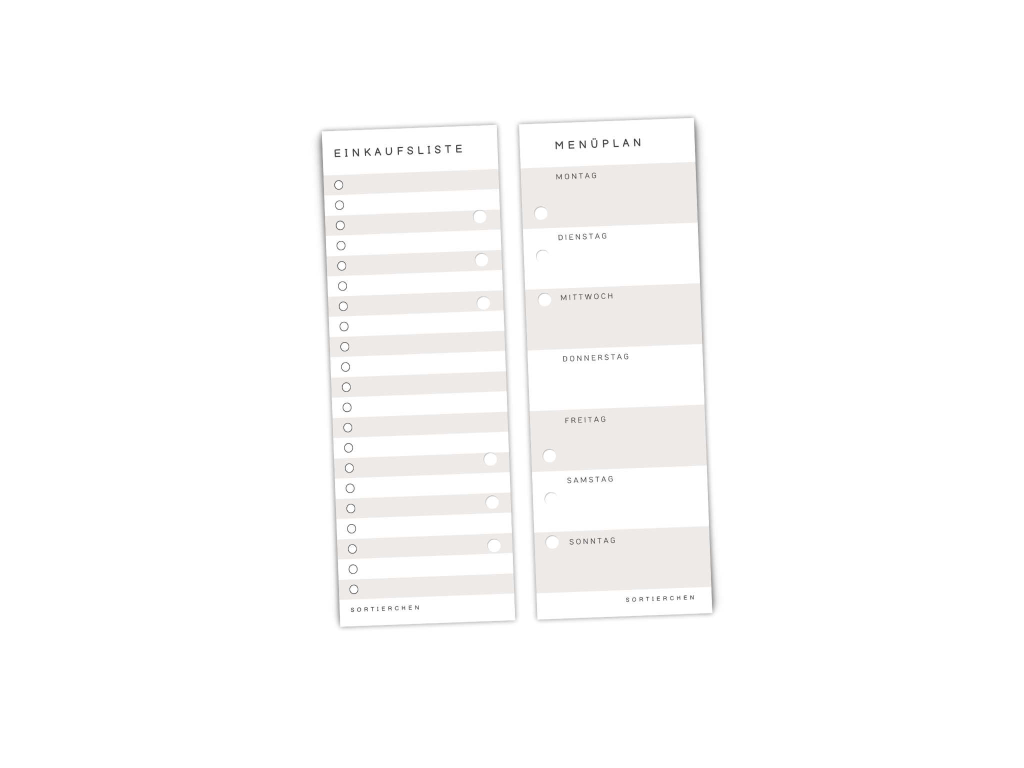 Menüplanung & Einkaufsliste als Zusatzeinlage für die Wochenplanung – halbe Seite A5 (7,4x21cm) – als Zubehör für Ringbuchplaner mit 6-fach Lochung – 10 Stück auf 120g Papier