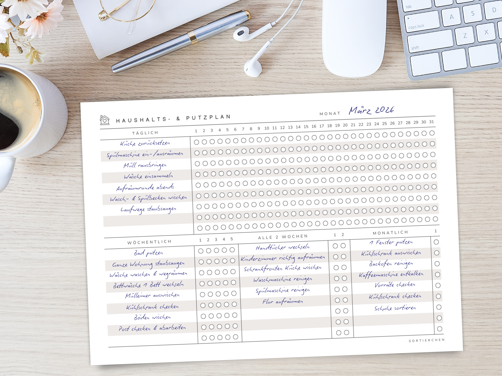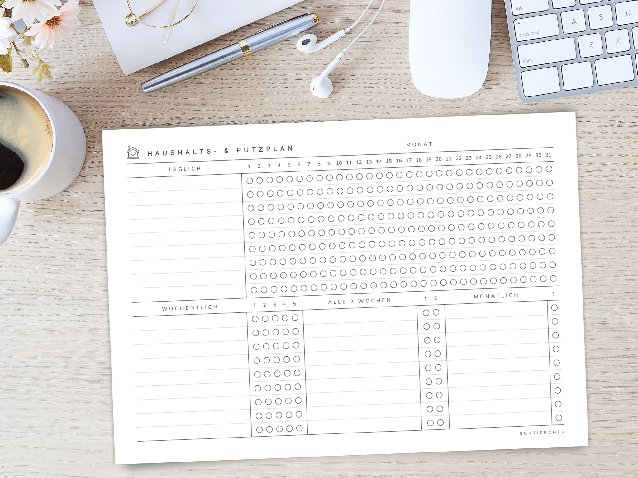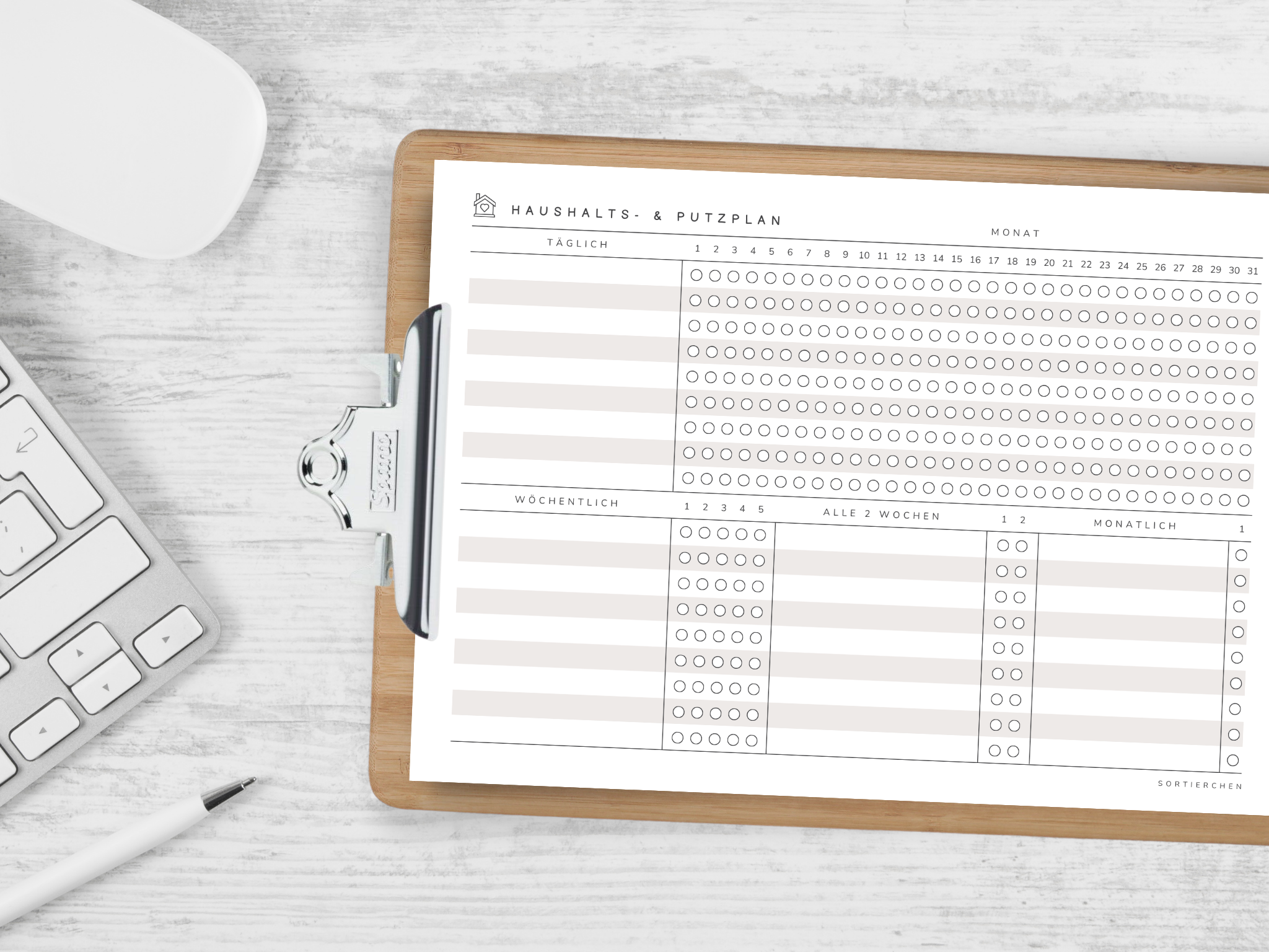 Haushaltsplan & Putzplan PDF | A4 Putzliste zum Ausdrucken | Monatsübersicht für tägliche und wöchentliche Aufgaben | Haushalt organisieren Vorlage