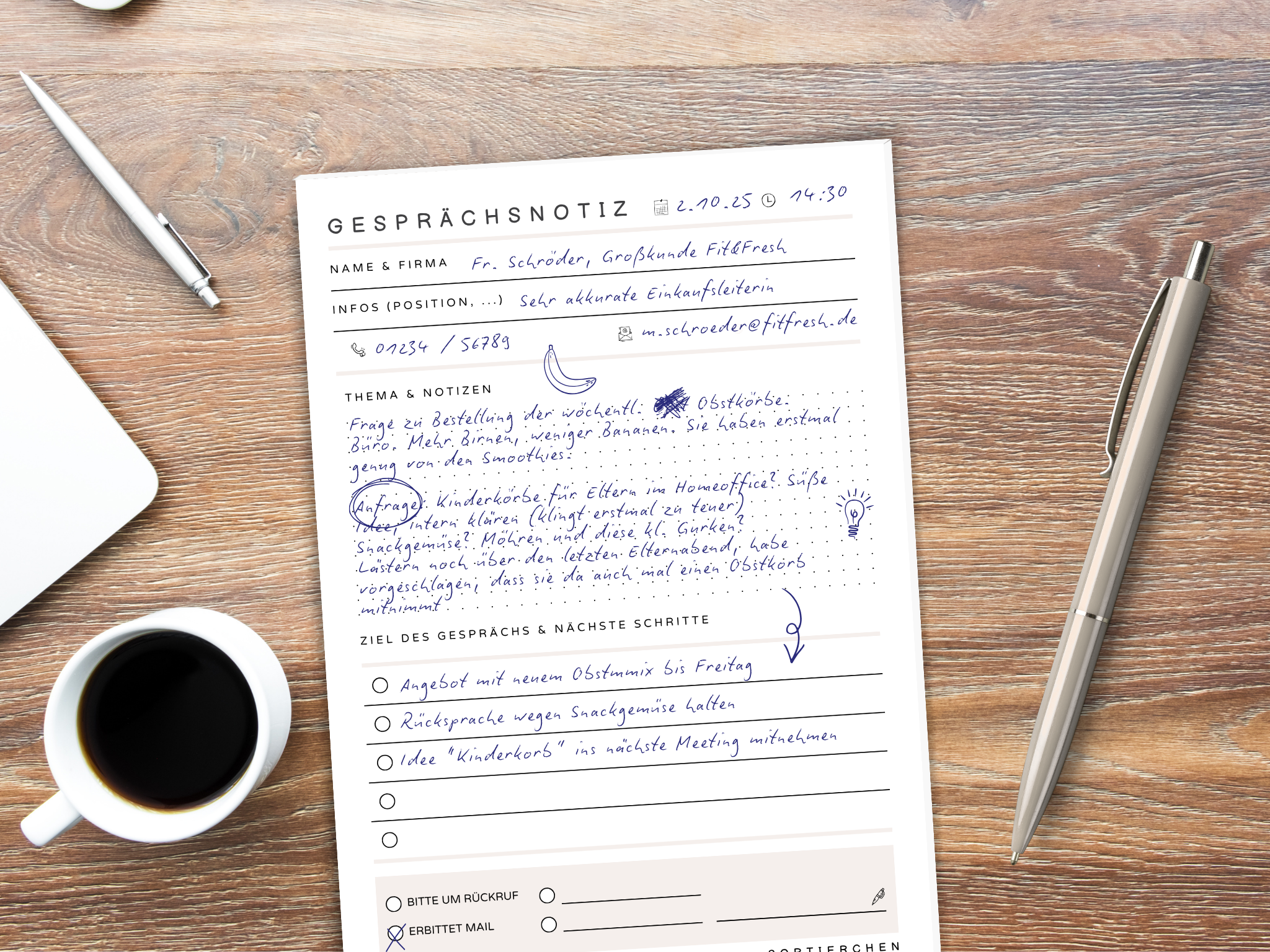 Kennst du das? Eigentlich sollte man jedes Gespräch direkt ins CRM tippen – aber so funktioniert dein Kopf nicht. Du musst erstmal mit Stift & Papier arbeiten: schnell kritzeln, abhaken, Notizen sammeln.