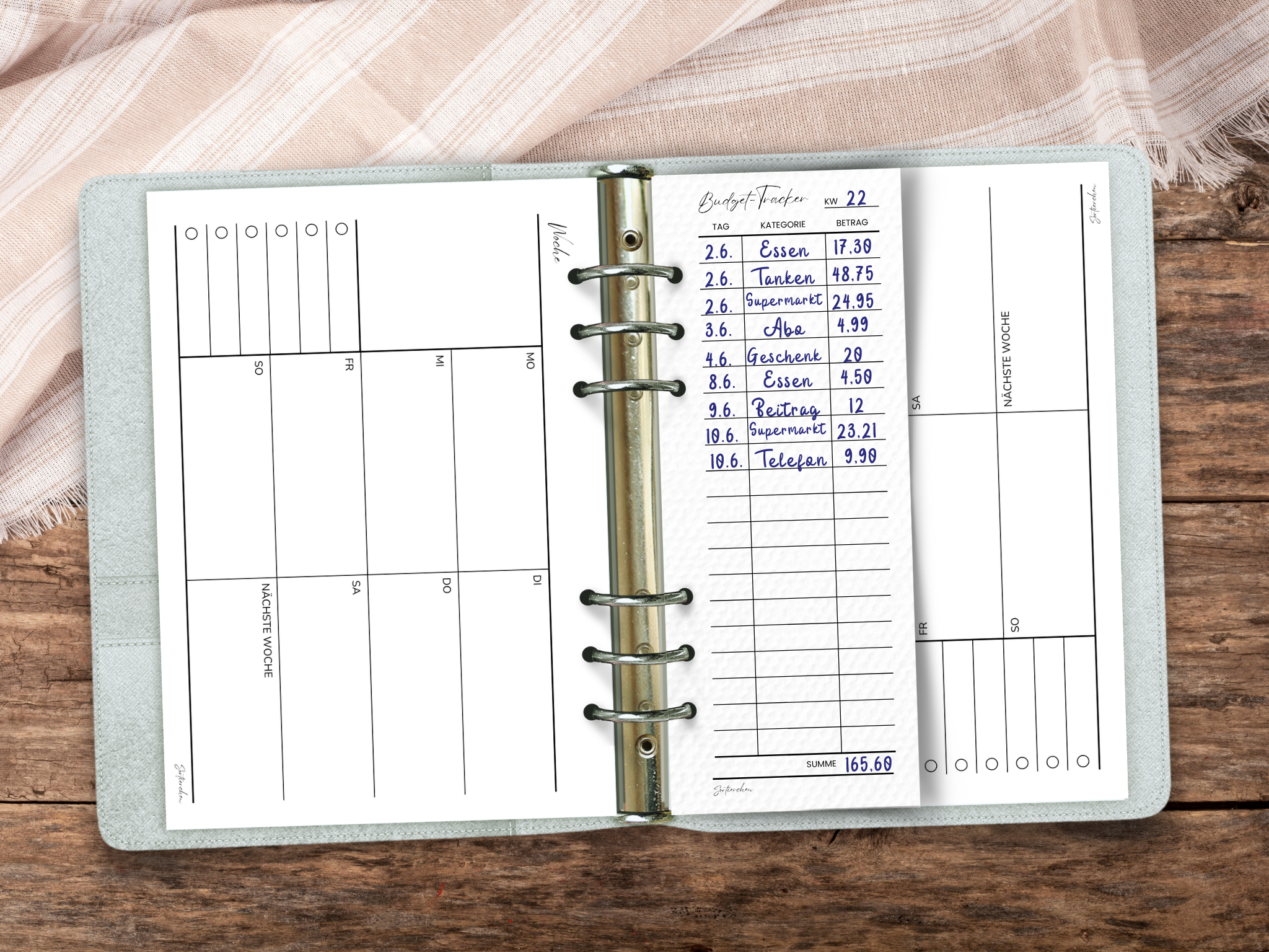Ideal als Ergänzung für deinen Wochen- oder Monatsplan im Ringbuchplaner – so hast du deine täglichen oder wöchentlichen Ausgaben immer griffbereit dokumentiert.