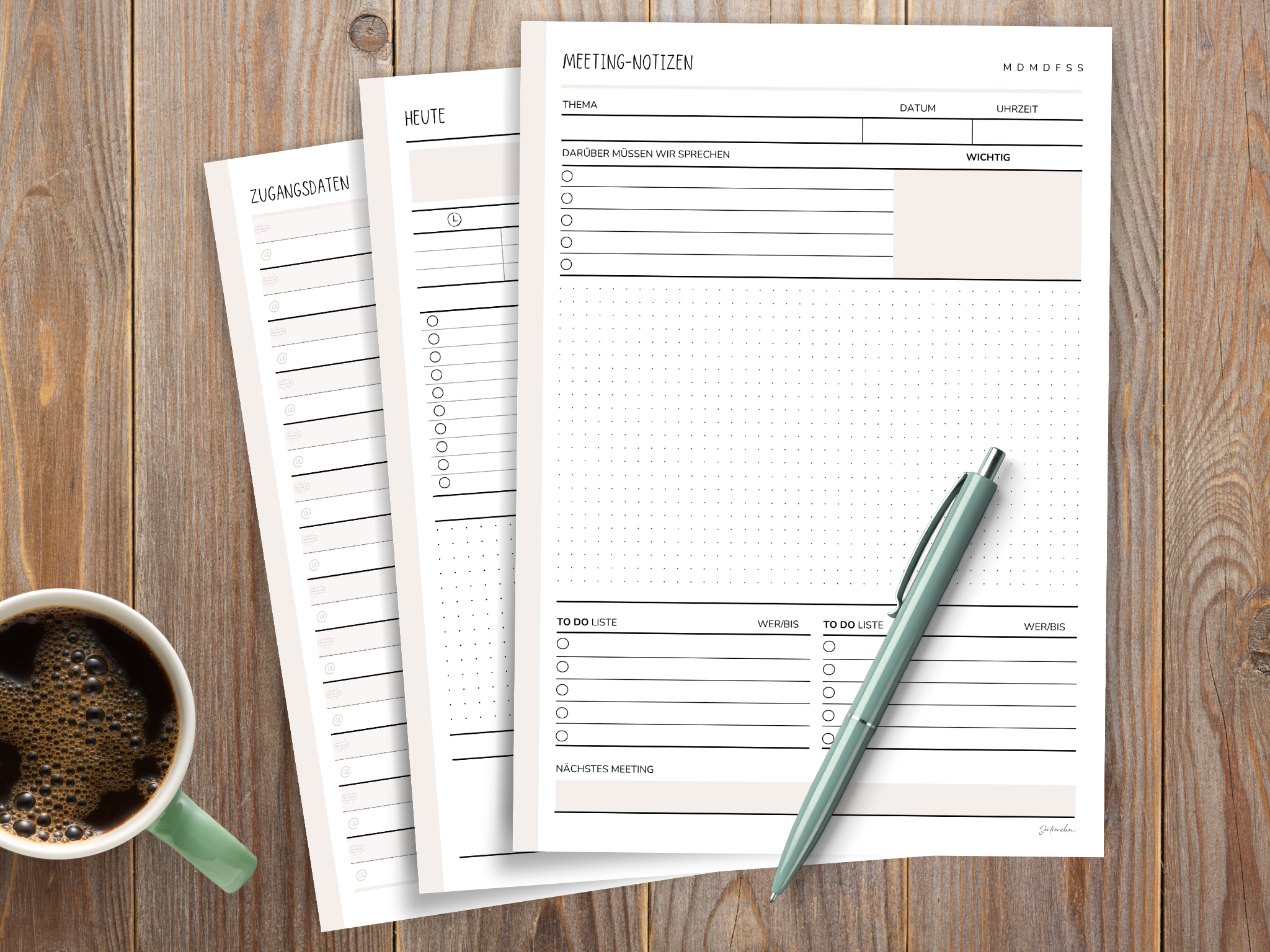 Großes Büro-Vorlagen Bundle | To-Do-Liste, Meeting-Notizen, Projektplanung, Übergabe, Stundenzettel & mehr | PDF zum Ausdrucken
