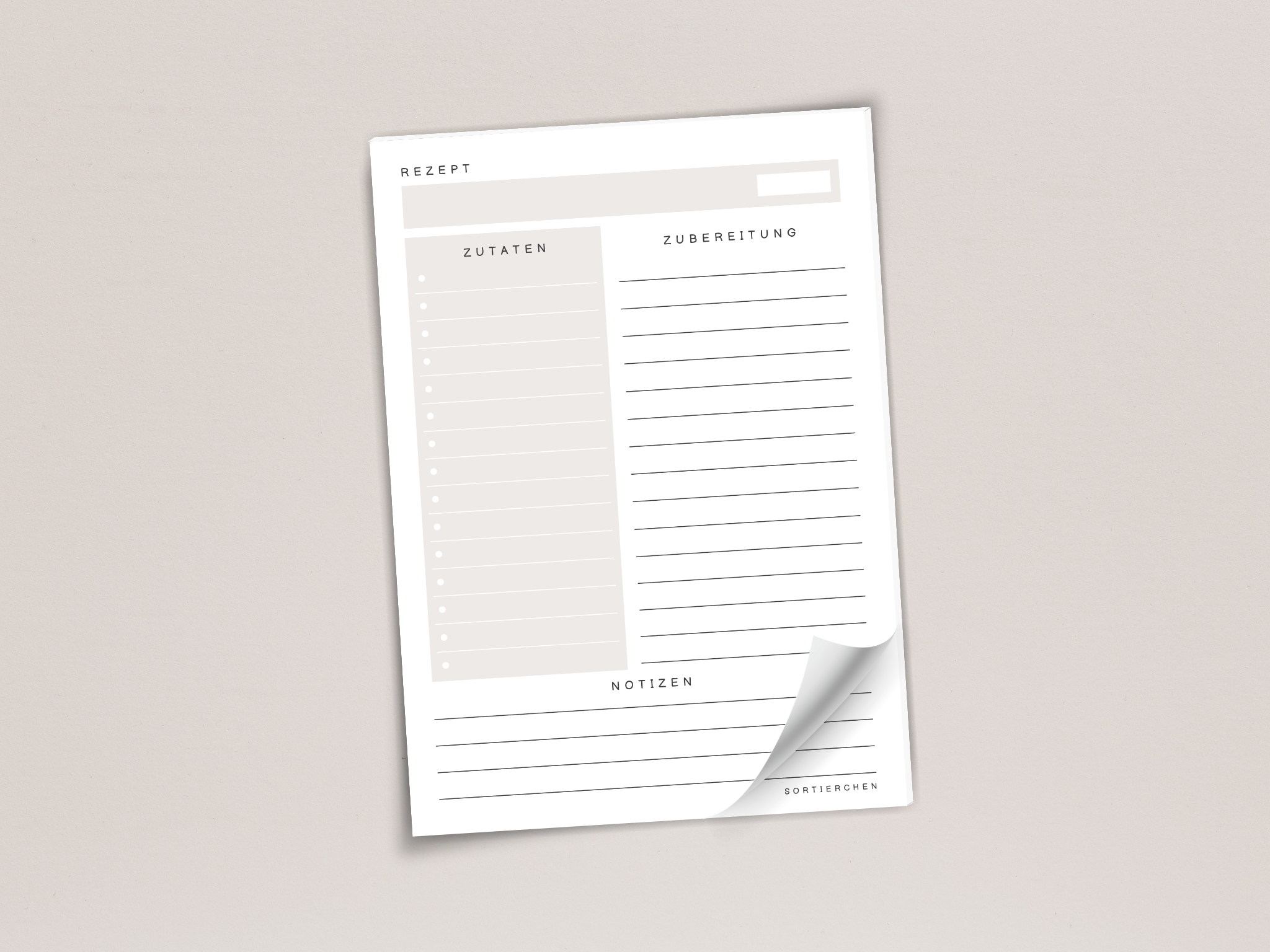 Rezeptblock A5 mit 25 o. 50 Blatt | strukturierte Vorlage für Titel, Kategorie, Zutaten, Zubereitung, Notizen & mehr. Ideal zum Rezepte festhalten.