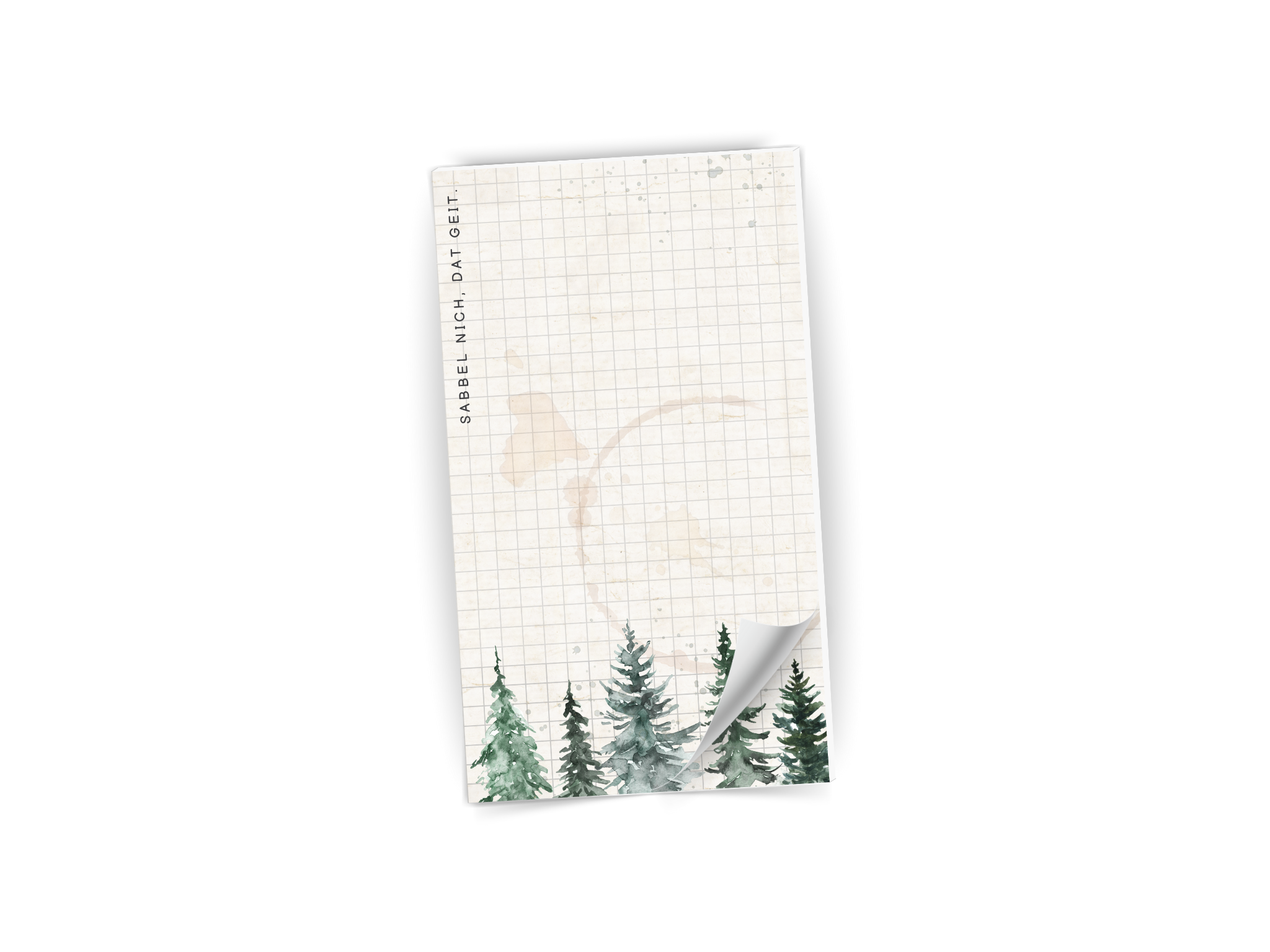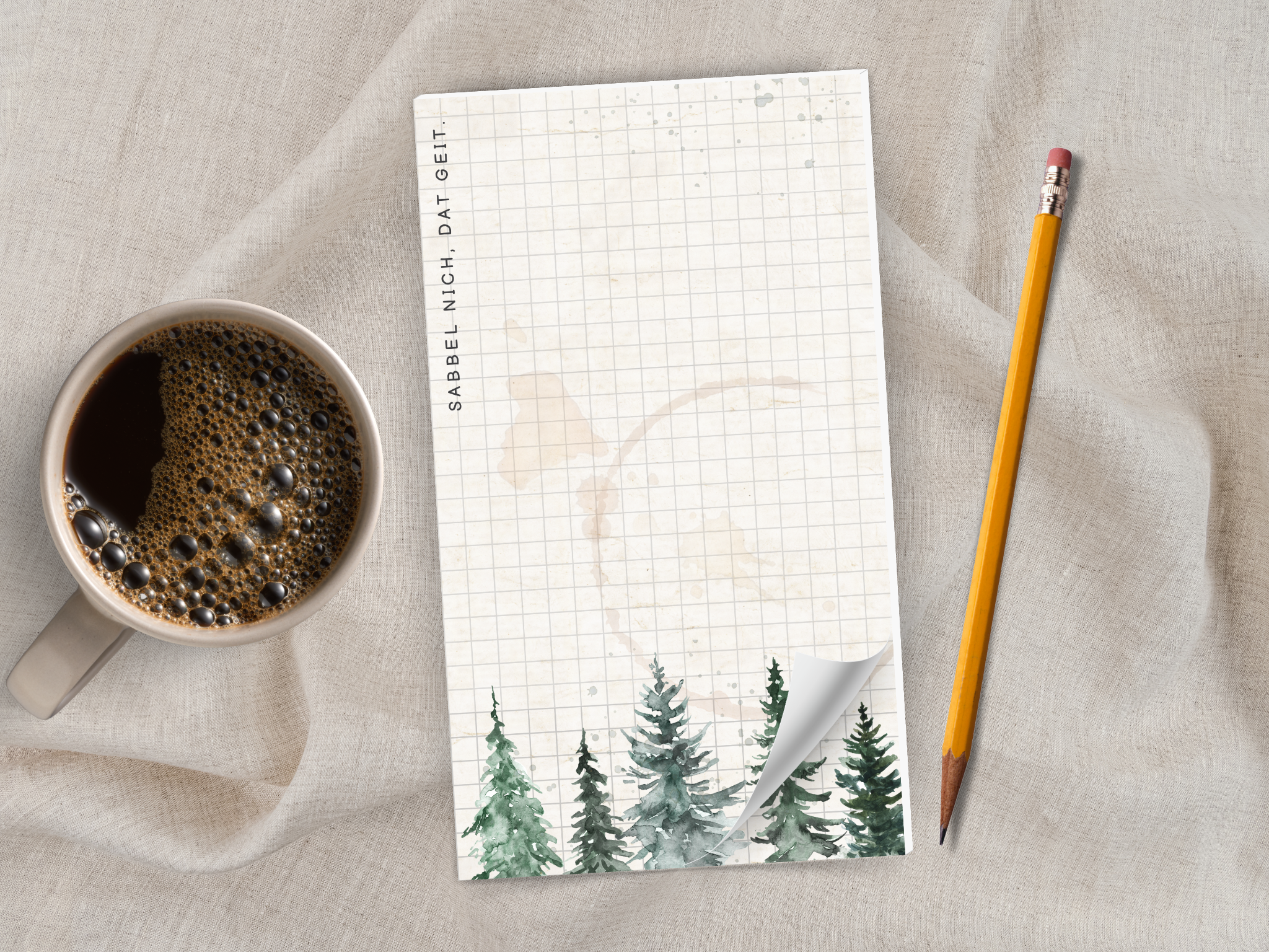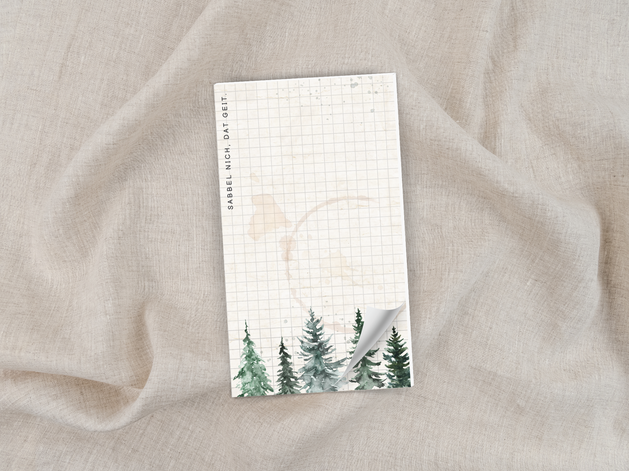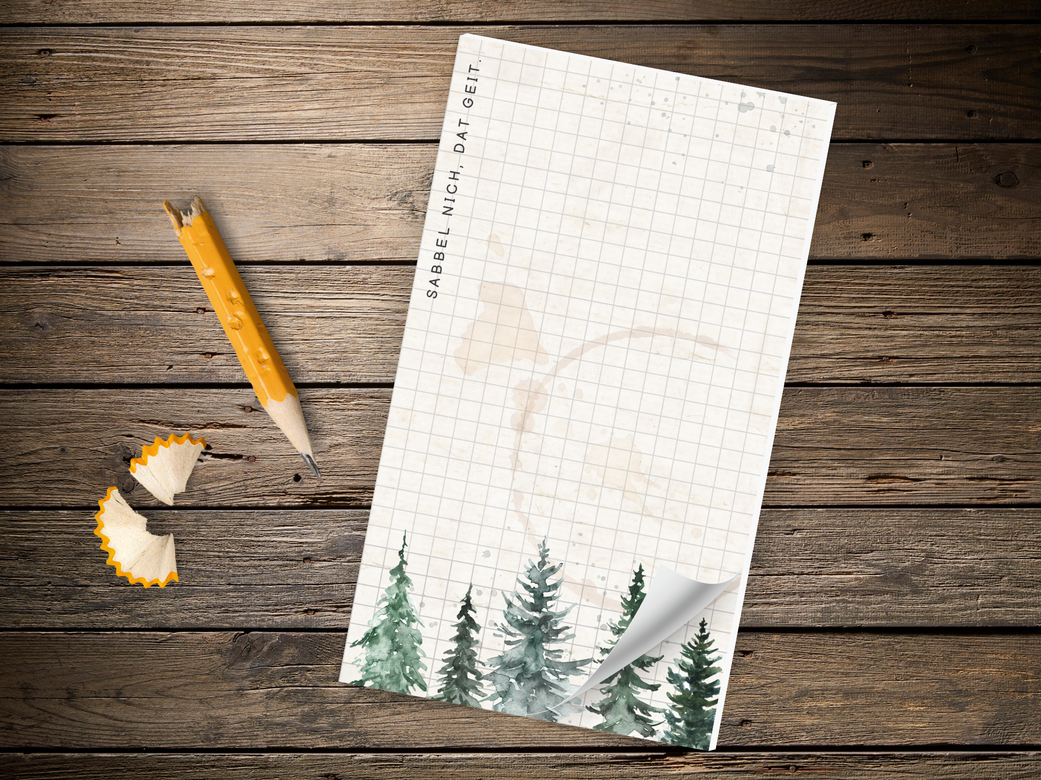 Plattdeutscher Notizblock mit Spruch & Waldmotiv „Sabbel nich, dat geiht!“ 25 Blatt kariert
