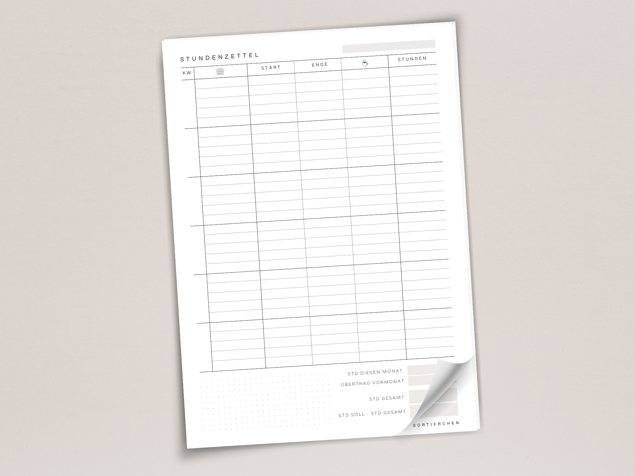 Stundenzettel Notizblock A4 | 25 Blatt | 100g Papier