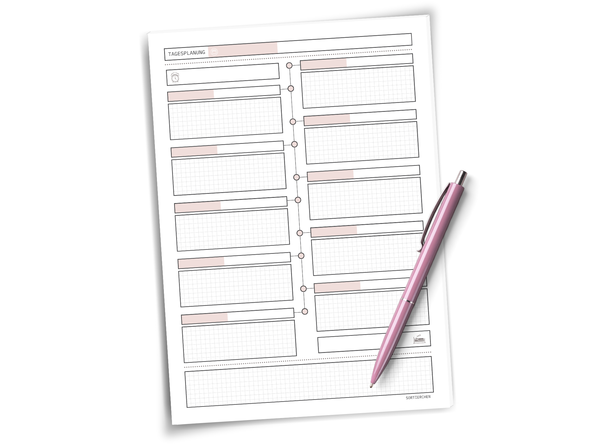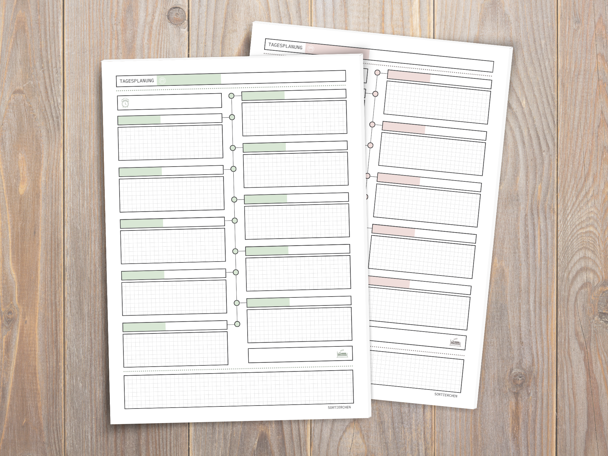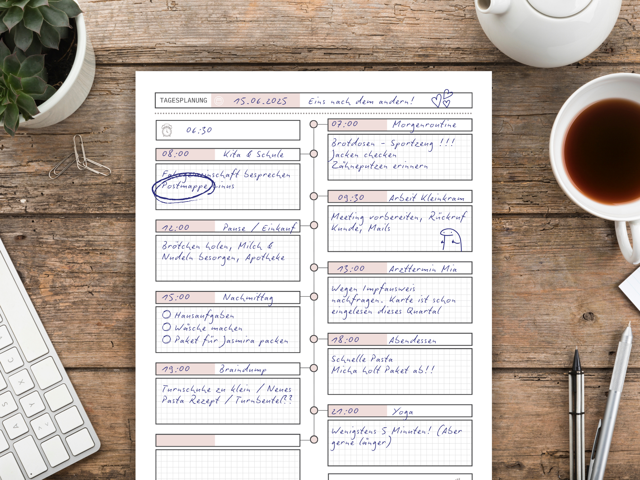 Dieser schnuckelige A4-Planer ist perfekt, wenn du nicht in 30-Minuten-Takten, sondern in echten Lebensphasen planst: Frühstück, Termine, Fokuszeiten, Familienlogistik oder kreative Inseln.