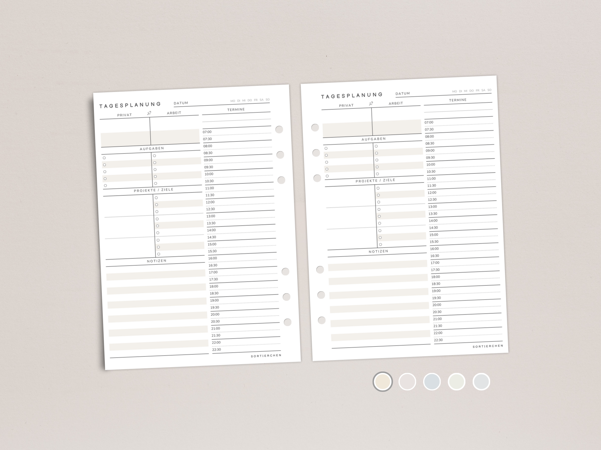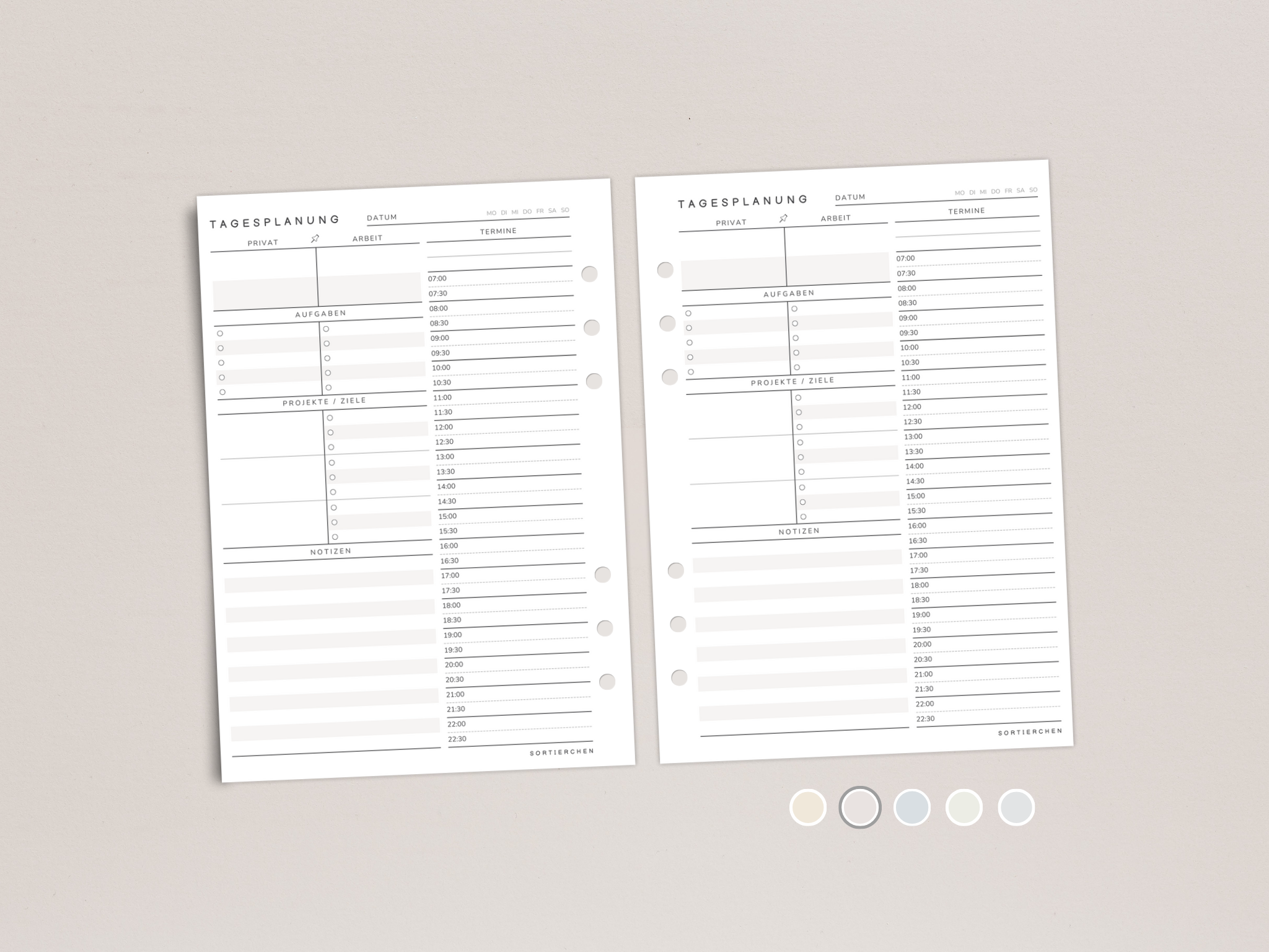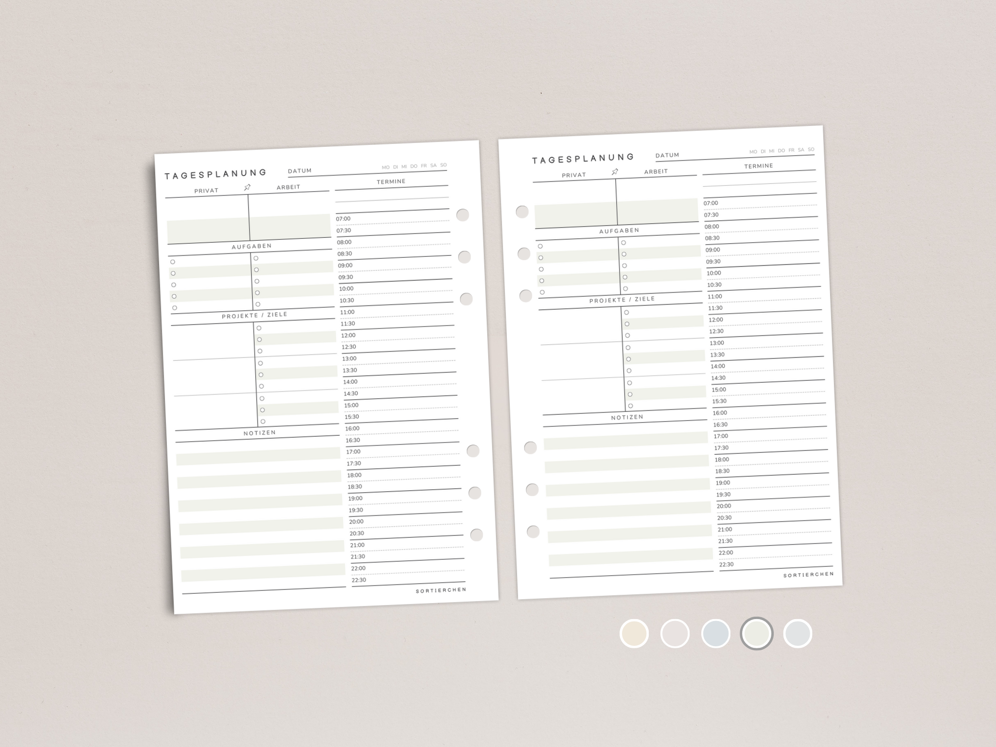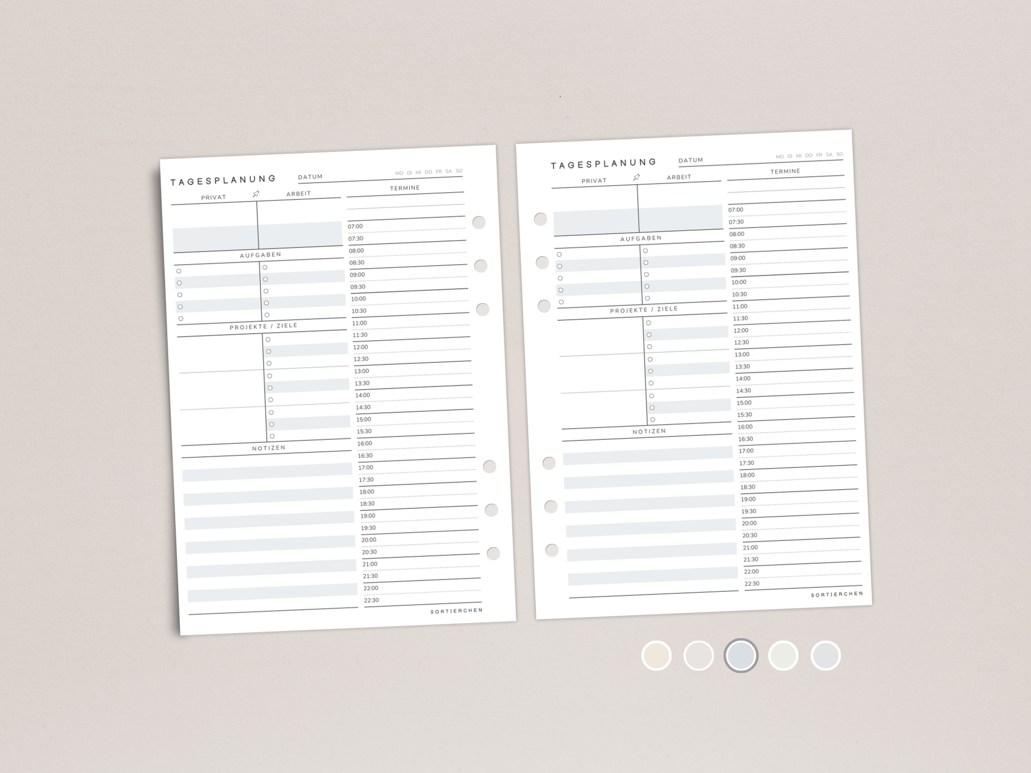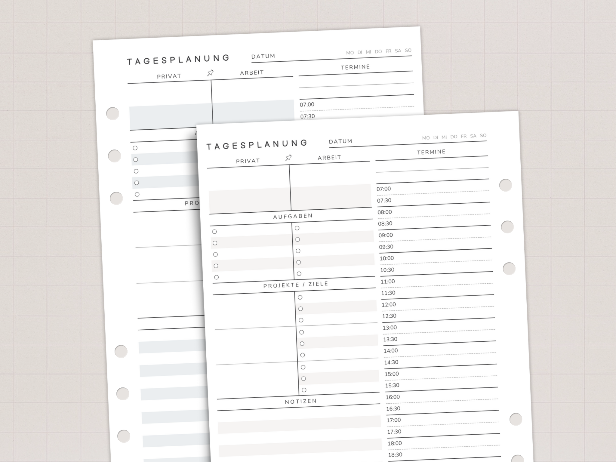 Diese A5-Tagesplaner-Einlagen helfen dir, Arbeit & Alltag in Einklang zu bringen. Egal ob Homeoffice, Familienchaos oder Kopf voller Projekte, mit dieser Vorlage bleibt der Überblick auf deiner Seite.