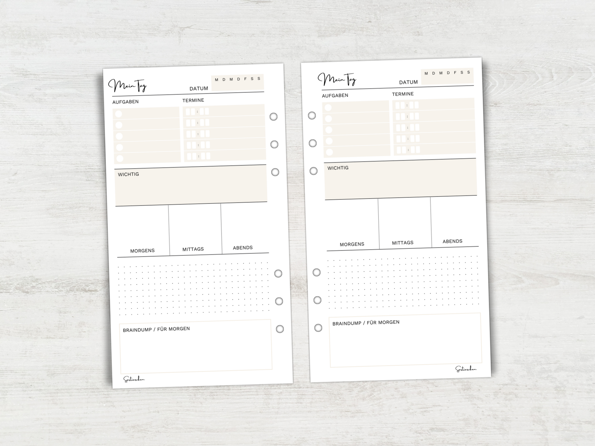 A6 Personal Tagesplaner mit Aufgaben, Terminen & Notizen | 25 Blatt für 50 Tage | 6-fach gelocht, 100g Papier, ideal für volle Tage & Struktur im Alltag.