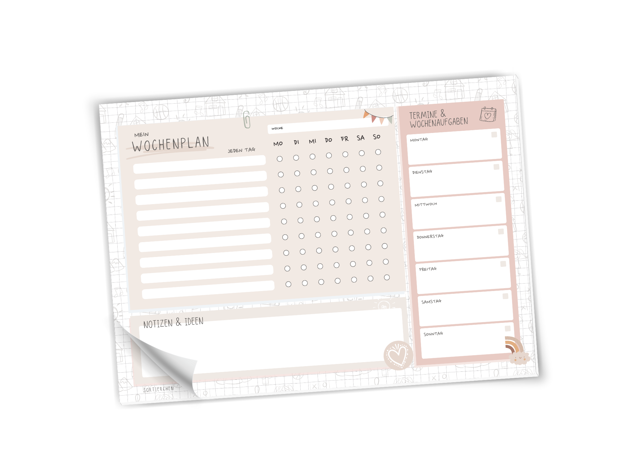 Wochenplan Notizblock für Kinder & Jugendliche | Routinen und Aufgaben selbstständig im Blick behalten | 25 Blatt A4 Querformat