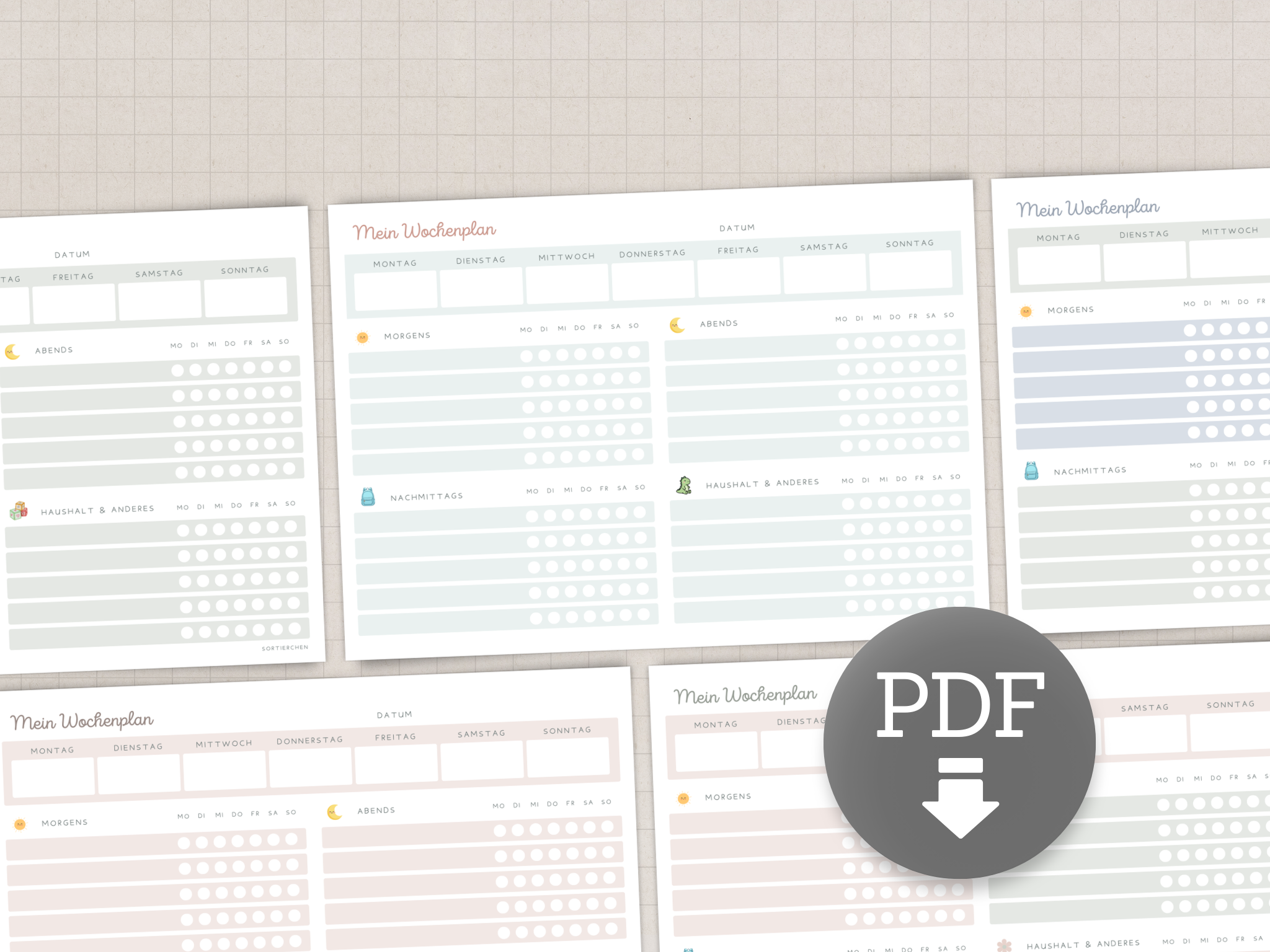 Wochenplan für Kinder – Tagesroutinen & Aufgaben | 3 Farben (Blau, Grün, Lila) | PDF zum Ausdrucken