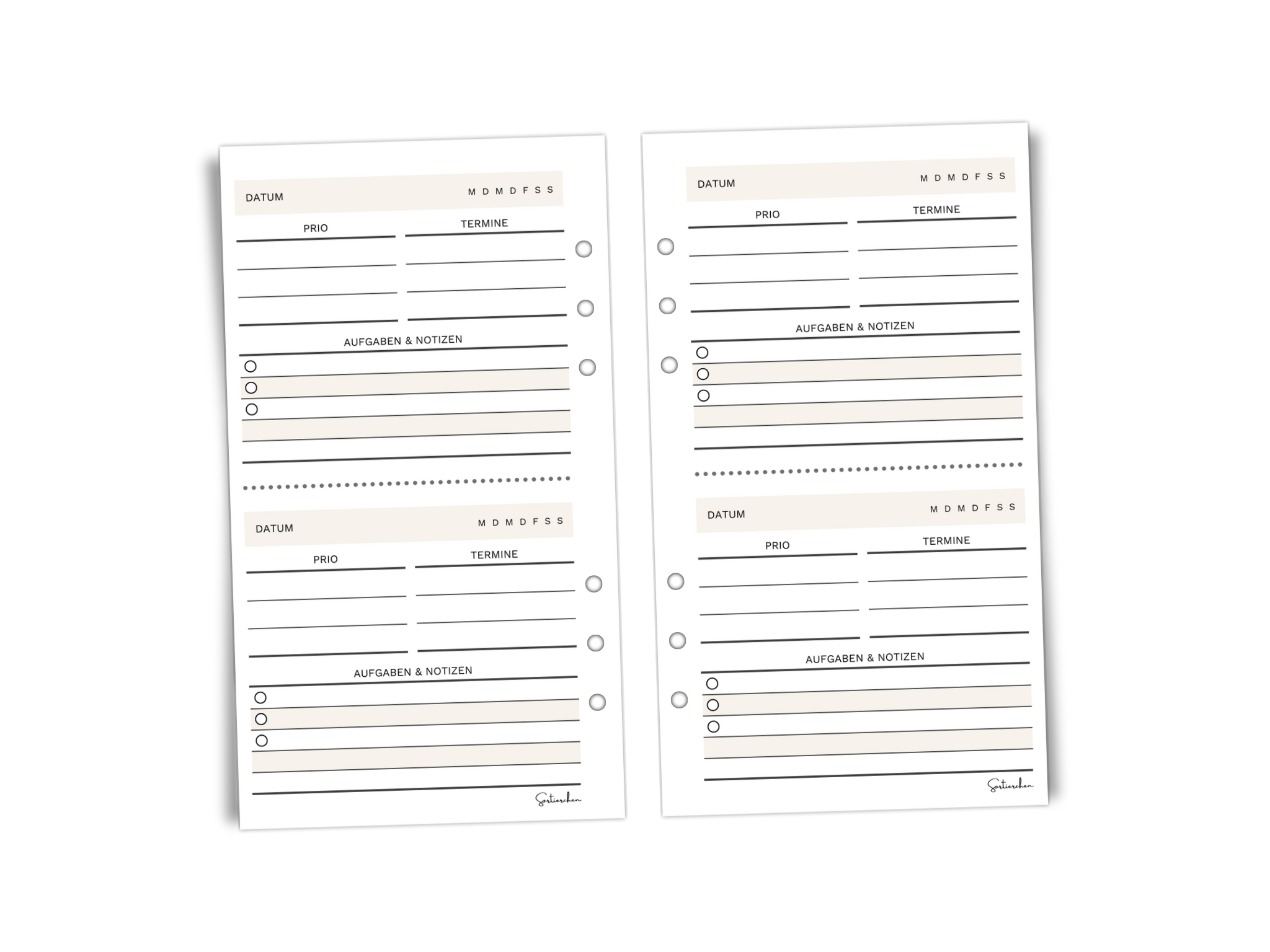 A5 Planer Einlagen 2-Tages-Plan | 100 Tage | 25 Blatt gedruckt | To Do & Termine | 100g Papier | 6-fach Lochung