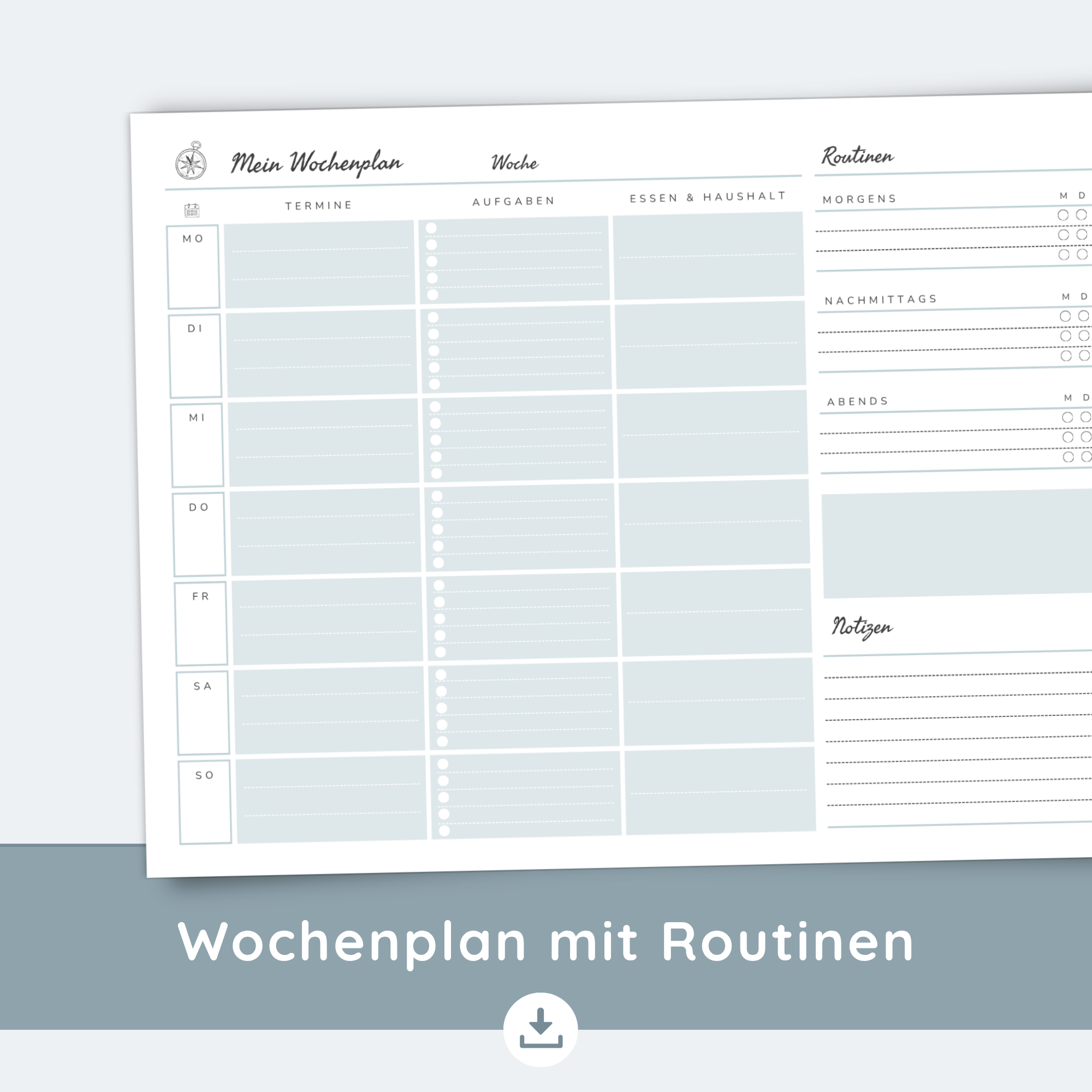 Wochenplaner PDF | Undatiert mit Routinen | Wochenübersicht mit Habit Tracker, Essen & Haushalt