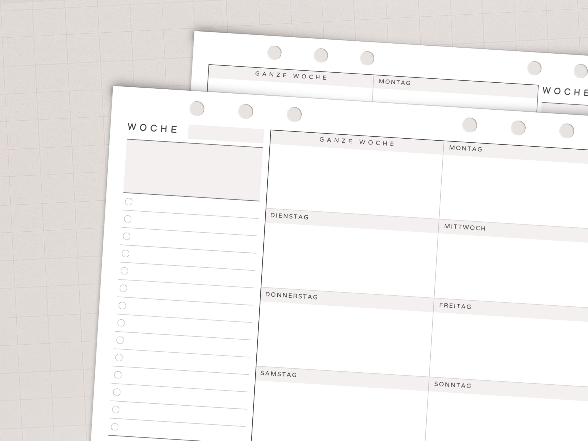 Diese Wochenplaner-Kalendereinlagen machen dir das Planen leichter: durch das praktische Querformat sind die Ringe beim Planen nicht im Weg.
