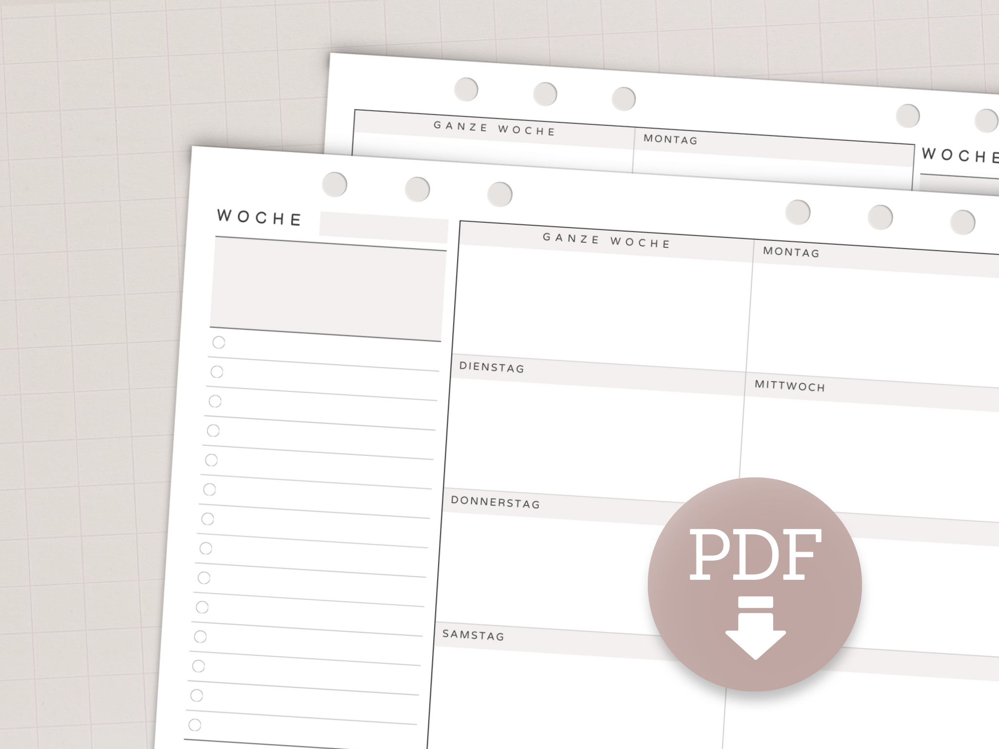 Dieser minimalistische Wochenplaner im A5-Querformat ist die perfekte Ergänzung für deinen Ringbuchplaner. Das praktische Design sorgt dafür, dass die Ringe beim Schreiben nicht im Weg sind.