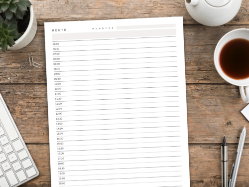 Manchmal ist so viel los, dass es einen Tagesplaner braucht, um nichts aus dem Blick zu verlieren. Ob Termine, Aufgaben, Projekte oder Selfcare-Elemente, hier findest du verschiedene druckbare Kalendereinlagen, mit denen du einzelne Tage planen kannst.