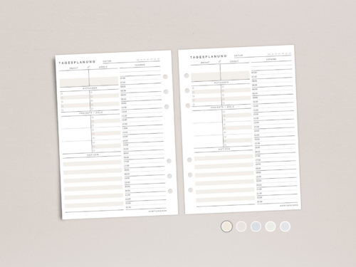 Tagesplaner-Einlagen A5 | PDF Download zum selber drucken | 5 Farben | je Farbe Vorder- & Rückseite