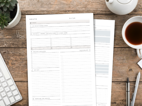 Büro-Vorlagen-Bundle als PDF zum Ausdrucken. 17 Vorlagen: To-Do-Listen, Meeting-Notizen, Projektplanung, Übergaben & Stundenzettel uvm.
